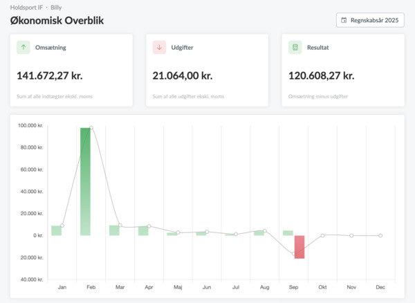 Det er slut med at jonglere mellem systemer og Excel-ark for at holde styr på økonomien. Med Integreret Regnskab i Holdsport får I et komplet regnskabsmodul direkte i Holdsport – bygget på Billys platform, men skræddersyet til foreningens behov.