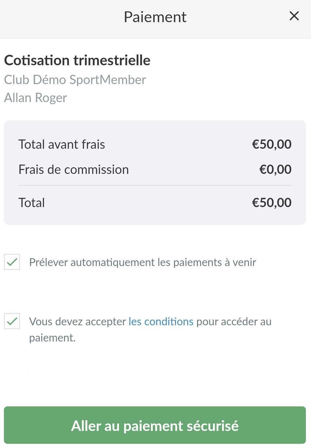 Si vous avez un profil parent, et donc un accès aux profils de votre/vos enfant(s), vous pouvez payer la cotisation de votre enfant sur SportMember via l'application.