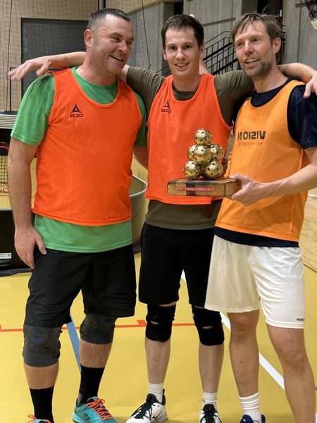 På trods af 4 ud af 6 knæ med knæbind vandt Hold 1 årets Virup Mesterskab i Floorball. Holdet bestående af Martin, Søren og Nicklas som er knap 42 år i gennemsnit vandt finalen med et Golden goal efter den ordinære kamp var endt 2-2 mod hold 7 (nu gætter jeg bare - der er alligevel ikke nogen som husker dem der bliver nummer 2).